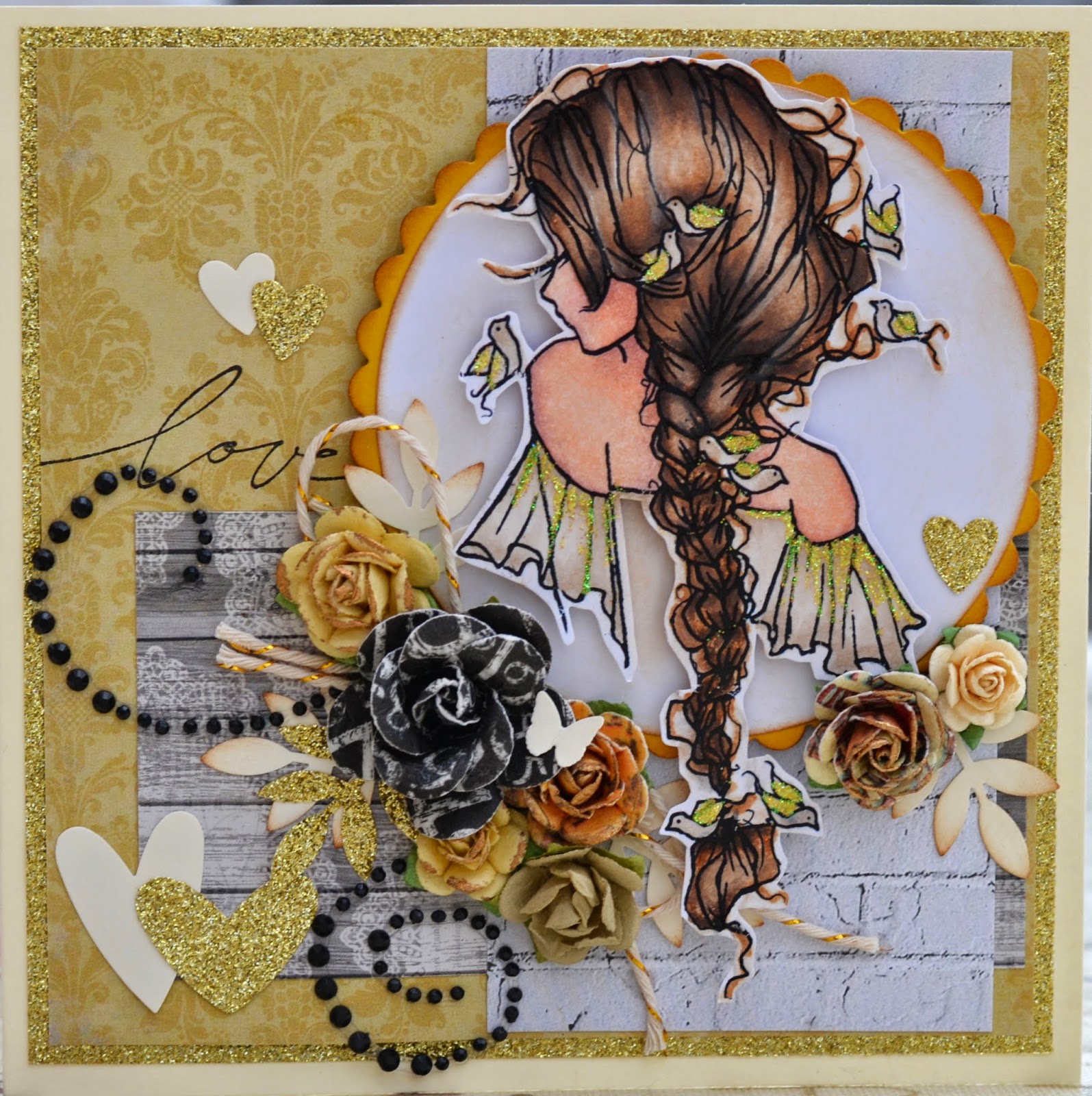 The prize consists of 10 sheets of 12 x 12 patterned papers, a pack of coloured rub ons, a pack of black and white rub ons, a stamp set and a die cut elements sheet. Fabulous prize, right?!